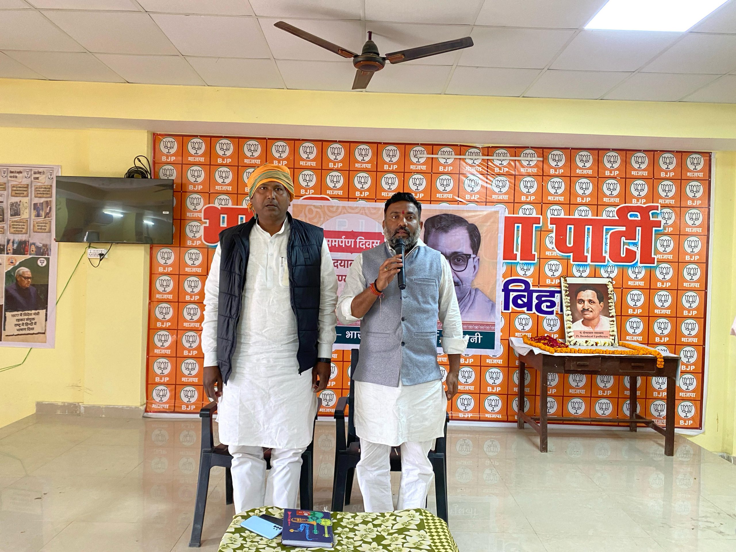 भारतीय जनता पार्टी जिला कार्यालय के सभागार में बुधवार को श्रद्धेय पंडित दीनदयाल उपाध्याय जी की पुण्यतिथि “समर्पण दिवस” के रूप में श्रद्धा और सम्मान के साथ मनाई गई। कार्यक्रम की अध्यक्षता भाजपा जिला अध्यक्ष प्रभांशु झा ने की, जबकि संचालन जिला महामंत्री सुबोध कुमार चौधरी ने किया।