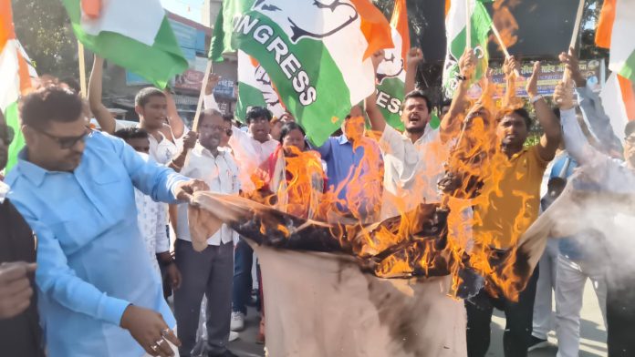 हेमंता बिस्वा शर्मा के बयान के विरोध में मधुबनी कांग्रेस का आक्रोश मार्च, पुतला दह