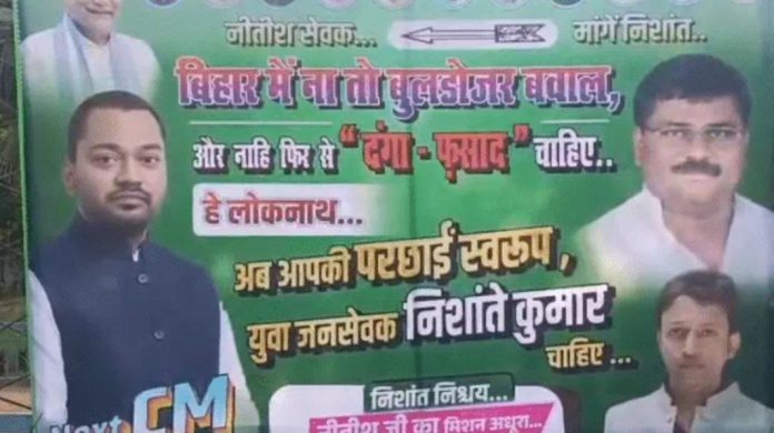 पटना में सियासी तापमान हाई “ना बुलडोजर बवाल, ना दंगा-फसाद चाहिए” — निशांत को CM बनाने की मांग वाले पोस्टरों से हलचल तेज