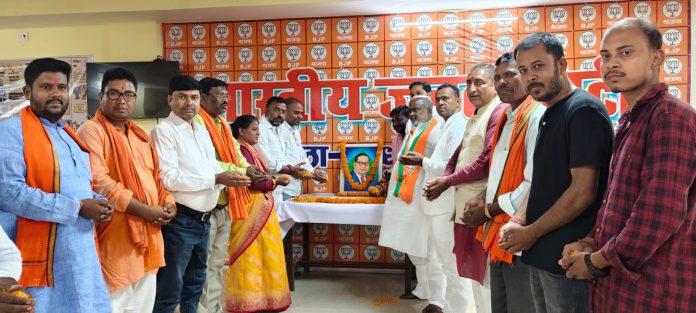 कार्यक्रम के दौरान उपस्थित पदाधिकारियों एवं कार्यकर्ताओं ने बाबा साहब के तैलचित्र पर पुष्पांजलि अर्पित कर उनके बताए समता, न्याय और बंधुत्व के मार्ग पर चलने का संकल्प लिया।