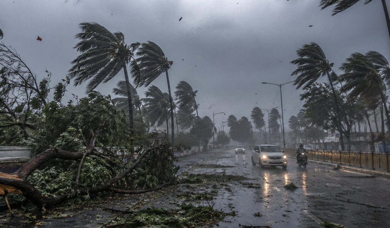 तेज हवाओं के कारण पेड़ उखड़ गए, बिजली आपूर्ति बाधित हुई और जनजीवन अस्त-व्यस्त हो गया।